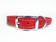 Collar de cuero natural PETS & FRIENDS con costuras, remaches metálicos hebilla y argolla de enganche para raza pequeña. Fabricado por FAINVET.