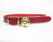 Collar de cuero natural PETS & FRIENDS para gato pequeño. Incluye cascabel y hebilla Fabricado por FAINVET. Color rojo.