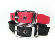 Collar PETS & FRIENDS de Poliamida con refuerzo de cuero, argollas soldadas y hebilla. Cómodo y lavable. Fabricado por FAINVET.
