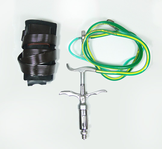 Equipo vacunador automático capacidad 5 ml. Dosifica 0,5-1-1,5-2-2,5-3-3,5-4-4,5 y 5 ml. Viene con estuche y manguera