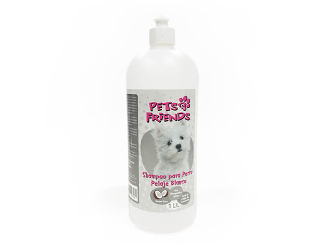 Shampoo líquido pelaje blanco marca PETS & FRIENDS formulado y elaborado por FAINVET LTDA. con materias primas importadas de primera calidad en base a esencia de Coco. Es hipoalergénico, no contiene formalina como preservante ni químicos irritantes. Mantiene y restaura la grasitud y humedad propia de la piel y pelaje al poseer un pH balanceado. Ayuda a mantener el pelaje blanco de su mascota y agentes humectantes que facilitan el cepillado del pelaje.