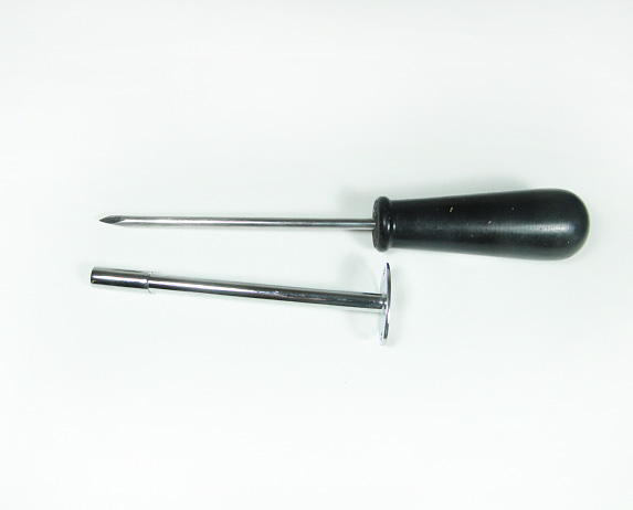 Trocar VOLK de acero y mango de madera de 20.5 cms con cánula de 10 cms. Utilizado para descomprimir presión provocadas por empastaduras.